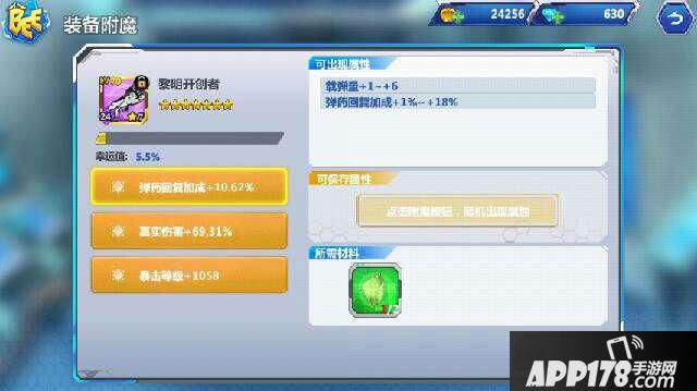 这里小编推荐,载弹量+5以上或弹药回复+12%以上,左上角有附魔幸运率,控制附魔出什么属性。单个载弹量增加在一定程度下增加了黎明开创者被动的回复数,弹药+5以上可以使得被动回复数+1,而弹药回复是增加弹药包的回复量,也使武器本身第二个技能的作用更为突出。
