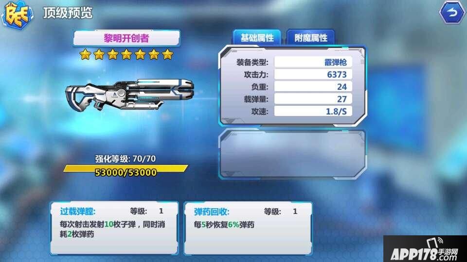 1.过载弹膛 :每次射击发射10枚子弹,同时消耗2枚弹药。