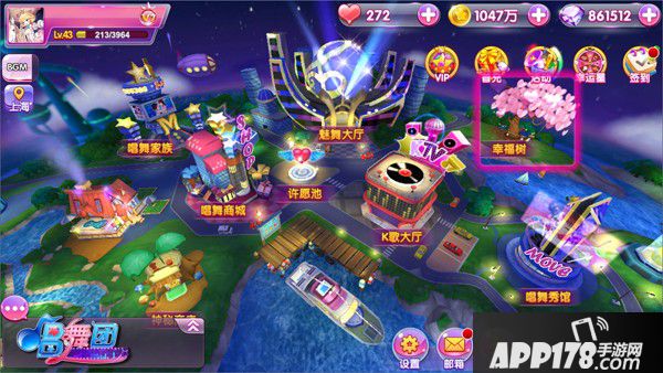 唱舞团幸福树怎么结婚,幸福树的位置在主社区偏右侧,“K歌大厅”的右上方。