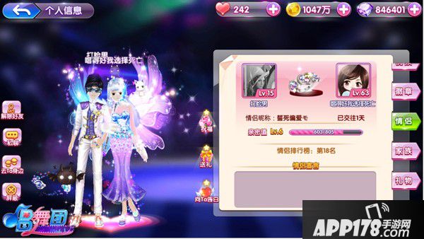 成情侣之后,在进入幸福树就看到的就是你们2个人恩爱的pose哦!还有是属于你们的情侣信息;可以抒写属于你们2个人的甜言蜜语和爱的昵称。