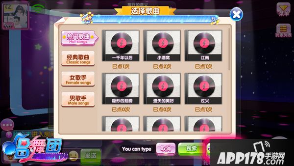 其他的小伙伴进入主播房间,可以点歌请主播来演唱哦!不过主播唱的也很幸苦,所以点歌是要付点钻石的哦……当然演唱歌曲后,主播可以获得对应钻石的人气值。当主播新秀的粉丝超过5000,或人气达到20000时,可升级达人主播。