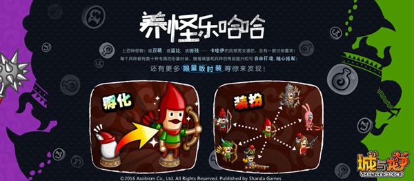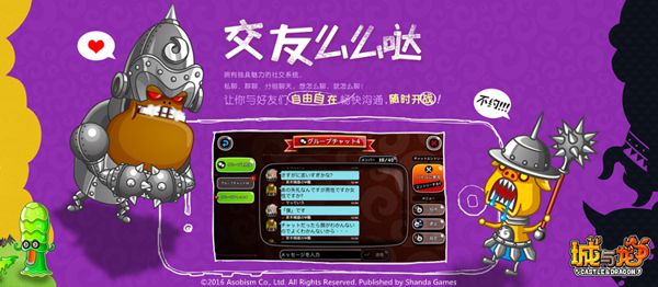 《城与龙》是日本ASOBISM公司旗下森山工作室倾力打造、盛大游戏代理发行的手游力作,采用日系夸张丑萌画风以及“攻城对战*策略塔防*模拟经营”核心玩法,融合单人/多人互相合作/对抗模式,战斗时场面震撼,声势浩大,超过100多种的怪物军团等你指挥。《城与龙》目前在日本拥有大量活跃在线用户,日服突破百万登陆。长期名列日本APP STORE和Google Play榜单前列。