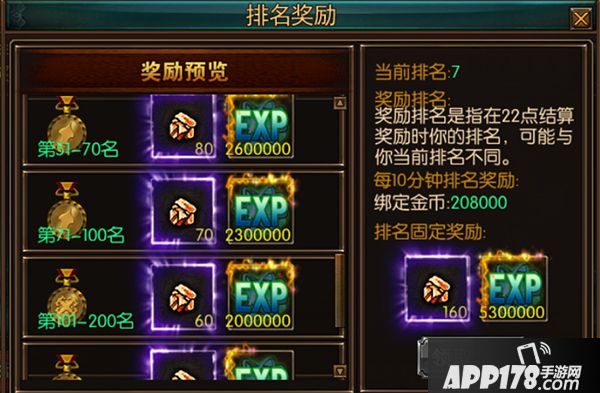 除了经验值和荣誉值的获得,个人竞技PK中,最重要的要数排名奖励了。我们从下图中,明显看到排名的奖励方式。排名等级越高,奖励越多。