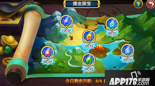 摸金探宝玩法是获得神兵玉石制作和进化材料的重要途径,每个关卡掉落不同的神兵玉石材料。
