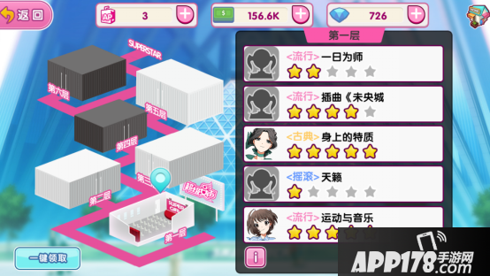 按照通告难度整个玩法一共分6档次,在游戏中表现为6个楼层,在各个楼层中可以接到对应难度的通告,等级越高开放的楼层越高,难度也越大。