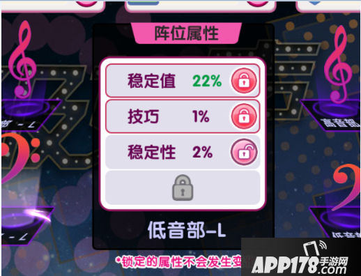 一个伴唱位最多有4条属性加成,当一个伴唱位属性加成的条数小于4时,每次洗炼都有一定的概率增加一条新属性加成。另外通过洗练玩家还可以改变伴唱位的加成属性和加成数值以此来获得更满意的加成类型和加成数值。