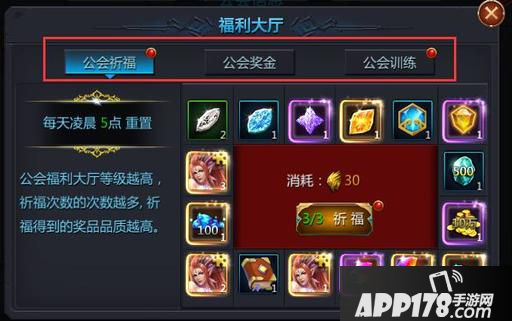 公会祈福可以通过消耗贡献值来抽奖励,各种稀有奖励等着你来拿哦。