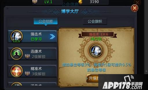 当博学大厅解锁后,可学习公会技能,博学大厅的等级越高,可学习的公会技能就越多,公会技能可增加角色的部分属性。