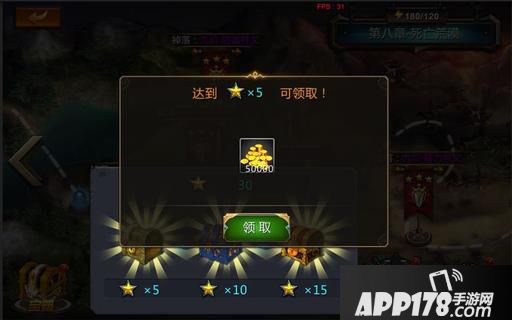 2. 三星宝箱,每个章节的三星宝箱的第一档都会有大量金币奖励;