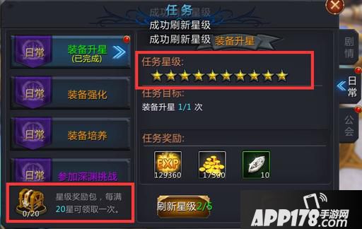 4. 日常任务,每完成一个日常任务,根据玩家等级和日常任务的星数,获得大量的金币和经验的奖励,建议大家将日常任务的星级刷满,此时领取的奖励是最多的。当然也是为了达到全部领取日常任务星级宝箱的最佳手段,这里可是很值得的,因为还会有钻石奖励的哦