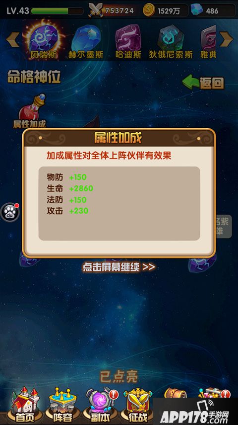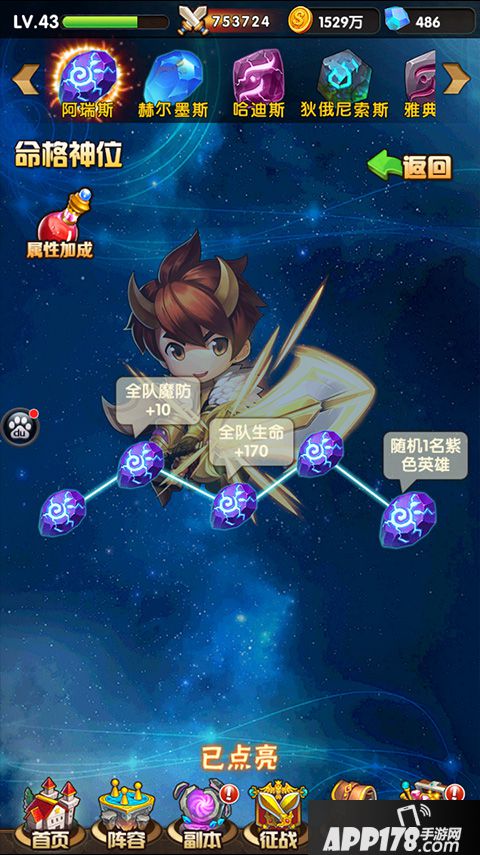 点亮不同的命格神位能为玩家提供不同的属性,物防、魔防、法防、生命、攻击、高品质英雄等。