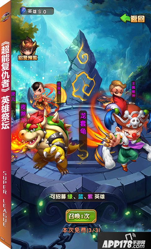 在英雄祭坛中,玩家可以抽取绿、蓝、橙色英雄,每天可以费抽取3次,每次抽取后需要10冷却才可进行下一次,除此之外,玩家还可以通过消耗英雄令进行抽取。