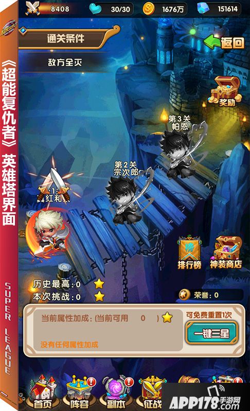 英雄塔每层有三关,通关本层后可以进入下一层,难度会随着层数升高逐渐提升。