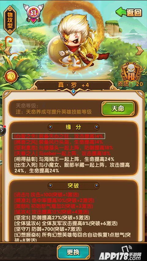 当强化、精炼达到一定阶段时能引发“共鸣”,玩家可以获得额外的共鸣属性加成。具体的属性加成详情,玩家可以在阵容界面中点击英雄名字旁的“强化”按钮查看。
