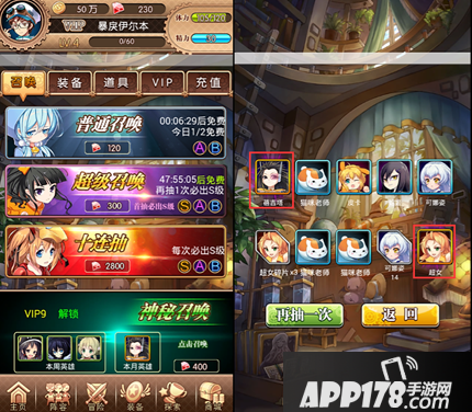 游戏中人物主要通过召唤获得,其次是碎片合成。普通召唤每天有两次免费机会,除第一次外基本上都是的人物碎片,第10次会出现A级人物。而超级召唤,首抽必出S级,然后每10次必出一个S级,抽到1个S需要3000钻。相比较而言,如果首抽是十连抽,则必出2个S级只需2800钻石,即抽一个S只要1400钻。是不是很便宜O(∩_∩)O哈!其余都是A、B级的经验卡、人物或人物碎片。已经拥有的人物会转化为碎片,A级紫色人物转化为43个人物碎片,B级蓝色人物转化为14个人物碎片。总体来说十连抽抽中A、B级人物和人物碎片的总量要比超级召唤抽10次要多,反过来超级召唤抽中的经验卡经验总量要多一些,但在成就任务中获得伙伴数量的任务同样会奖励经验卡,而且经验卡经验值要比召唤获得的多很多。所以不管从哪个角度分析,在钻石足够的的情况下,先抽一次10连抽获得2个S级人物是最明智的选择!至于之后能抽10连抽就尽量抽10连抽~