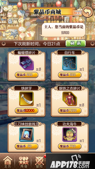 刷新时间未到时间,可以花费100紫晶币进行刷新,(新世界大冒险分为三章篇章,每一章打完之后都不能回头)