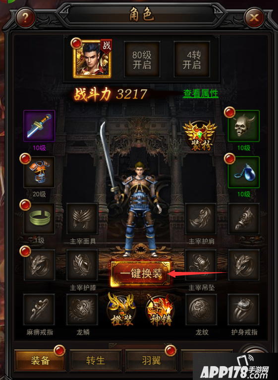 7、如果背包中有合适的装备,点击一键换装即可全部装备。