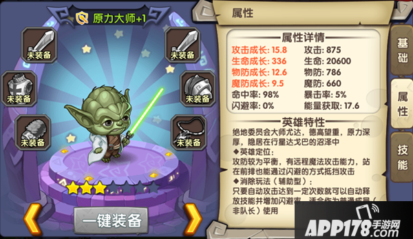 3.原力大师:每进行7次普通攻击会自动释放1次一定百分比攻击的原力光波,并且闪避接下来受到的若干次攻击;