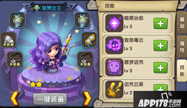 3.噩梦诅咒:每当3连消时,可以对敌方当前生命最低的敌方目标释放5秒诅咒,使其不能被治疗,并且受到伤害值增加一定百分比;