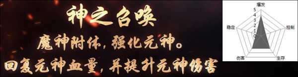 与天怒惊雷相比,神之召唤在伤害与控制能力上稍稍逊色,但是却更加强化了技能使用者的生存能力。虽然由于元神可能被击杀导致神之召唤失效,但是在多数情况下,它依旧可以作为一个续航能力很强的PK技能。