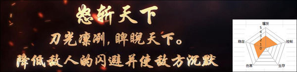 怒斩天下同样是个偏向均衡的技能,同时降低敌人闪避并使敌人沉默的效果可以说是六大组合技能中控制能力最强的一个。虽然伤害有些不足,但是沉默的效果足以让它在六个新技能中独树一帜。无法施法将会是PK中法师永远的噩梦。