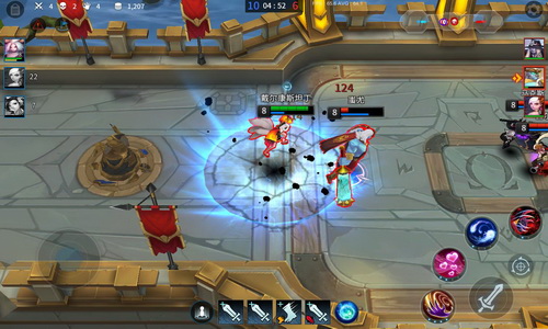 在移动端上可没有QWER的按键,所有技能已经被替换成快捷键使用。想要使用技能,只要轻轻一点。在等级提升之后技能快捷键边上还会有技能可以升级的标记,同样只要轻轻点击就能将技能等级提升。虽然操作有所变更,可是战斗爽快感丝毫未减,不管是AOE技能还是单体攻击技能,玩家都可以像PC端上的MOAB游戏一样轻松释放,将敌人一击必杀。