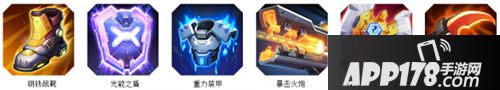 钢铁战靴+光能之盾+重力装甲+暴击火炮+狂怒战斧+嗜血镰刀