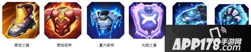 钢铁战靴+燃烧战甲+重力装甲+光能之盾+永恒手套+寒霜护盾