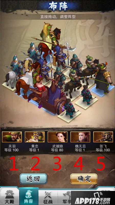 加怒和减怒的理念明确后,其余三个位置就很好理解了。各位主公可以排列群攻型武将,也可以上阵只打敌方全体武将的英雄。无论怎样,只要是打将且攻击力高的武将都可以上阵,比如魏无忌、黄忠、庞涓、武媚娘等。