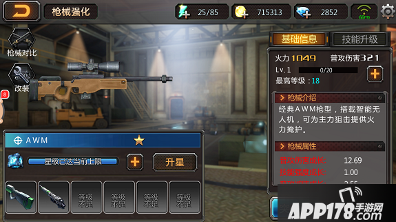 经典狙击枪AWM经过改造后,搭载了智能无人机,可以为狙击提供火力掩护。初始的AWM是蓝色品质的枪械,但是通过枪械养成可以培养成SS级的终极枪械。