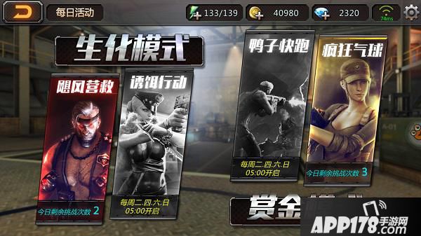 挑战玩法主要是一些具备特色的玩法,生化模式就是打僵尸,赏金模式则需要争分夺秒地进行精准射击,基本是以考验玩家的手速和准确率为核心内容,在刷图累了的时候,倒是可以尝试一下。