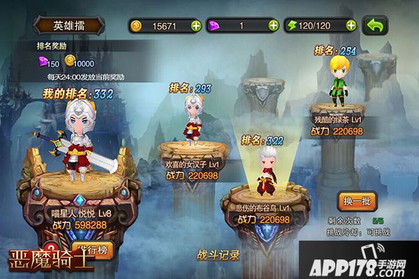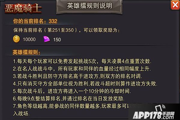 点击竞技场界面【英雄擂】图标即可进去挑战界面。