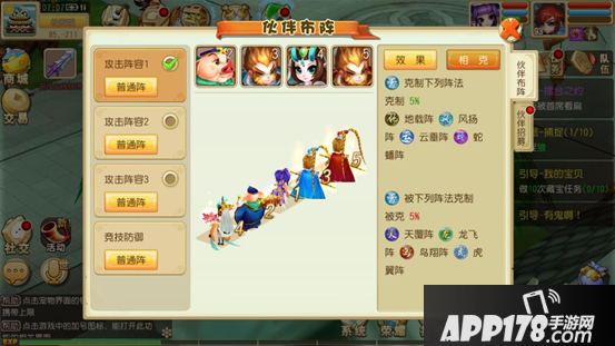 (2)伙伴布阵:伙伴可布置成不同的站位生成阵法效果,提升战斗力。不同的阵法互相克制。