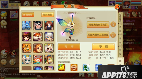 在图鉴界面可以查看到普通宠物的携带等级(参战等级)和每种宠物的获取途径,有多种多样的宠物满足玩家需求,人物每提升10级可以更换携带更高级的宠物。且每种不同的宠物会携带不同的技能,下方会显示该宠物可能会携带的技能。
