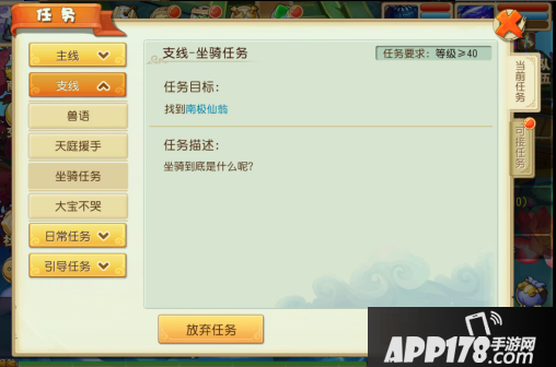 1.40级坐骑引导任务获得