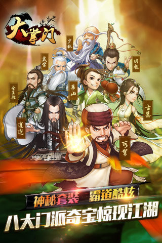 《大掌门》是一款武侠题材中国画风的RPG+策略类精品游戏, 拥有完美的武侠弟子养成体系,独特的缘分组合设定,丰富的江湖故事情节,为玩家呈现出引人入胜的武侠体验。武林代有人才出,尽收麾下走江湖,闯过一个个江 湖难关,挑战魔教势力,参加一场场论剑比武,最终立于武林之巅!