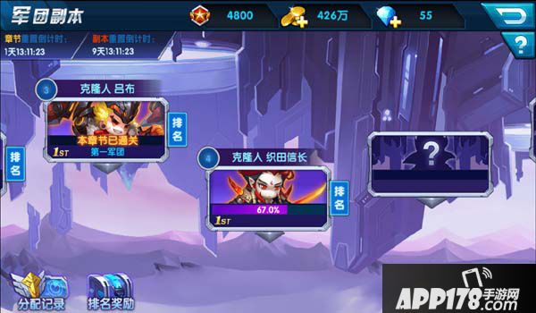 每个章节都有首次通关奖励,每个军团成员只能领取一次。