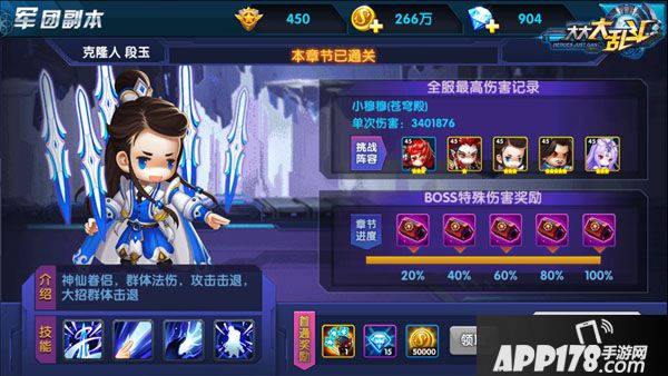 玩家进入当前所处的副本时,会看到克隆人BOSS的血量由100%逐渐下降并保持当前血量进度,限时90秒,BOSS血量能下降多少全看各战队战力。不用担心玩家会被BOSS击杀,此时BOSS的血量较高,但攻击力较低,因此玩家只要灵活指挥战队、努力削减BOSS血量即可。首次通关,全员都可获得首通奖励,每成功推进章节进度到下一阶段,还可获得BOSS特殊伤害奖励。全员齐心协力战BOSS,不用担心打不倒,只怕你众多奖励拿不到。每2天重置一次进度,千万别错过大量奖励哦!