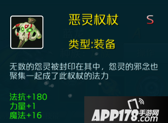 3.恶灵权杖:法抗+180、魔法+16、力量+1
