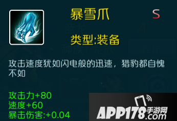 1.暴雪爪:攻击力+80 敏捷+23 速度+60