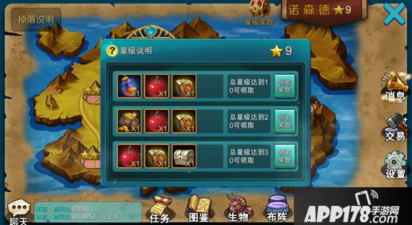 冒险关卡每章地图都有星级宝箱,每档奖励都会有越来越多的名望录,使用名望录一本可获得50点名望!