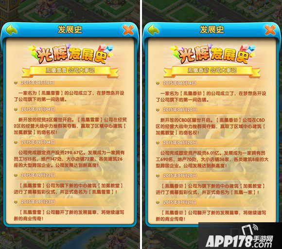 《大富豪2》是以商战为题材的模拟经营类手游,玩家在游戏中以策略建造与打击来壮大企业。当玩家到了一定的等级之后还可以给不同的商区和建筑冠名,获得更高的效益。但是,每个服都有一个建筑无法被复制,也无法被易主强拆,那便是神圣的教堂。玩家通过给唯一的教堂冠名即可被全服唯一的“发展史”记入大富豪的历史中,发展史记录了第一名的玩家第一次创建公司、第一次进入CBD、开设了多少店铺进行了多少投资,都将被一一载入。