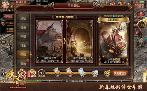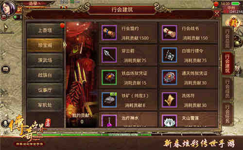其中,行会每日任务需要大家一起完成,参与任务的行会成员越多,完成任务后的奖励越高;行会珍宝阁中有穿云箭、行镖令、炼狱凭证等一系列道具售卖,助力勇士召唤兄弟、升级打怪。