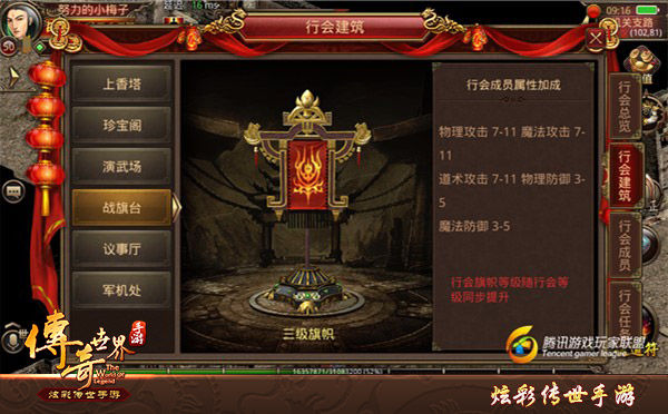 《传奇世界手游》行会玩法十分丰富,其中行会建筑各有妙用。上香塔古色古香,主要用来增加行会经验,每天一次的免费上香可以增加玩家的个人贡献;珍宝阁秘藏丰富,玩家获取的个人贡献就可在此进行兑换;作为杀伐之地的演武场则是开启行会BOSS的地方,消耗行会资源后击杀BOSS,将有几率掉落武器装备;战旗台可以全面增加玩家的属性,若想提升实力,提升行会等级是一大途径。