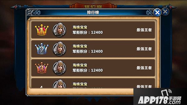 排行榜会显示玩家的排名,头像,名称,战斗力,段位