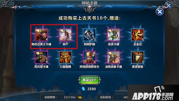 法术:我们在法术牌里面看到个好东西:神秘援军!我们来看看注释它有多神秘:复制战场上任意一支军队。也就是说带上这个,我们就能有3个东方强弩!
