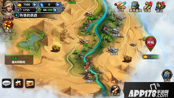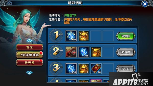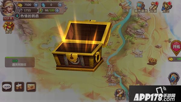 通过第三关之后,我们可以看到旁边的小宝箱一抖一抖的向我们招手、右上角的成就图标、活动图标都标上红点了,我们就本着勤俭致富的原则把他们一一拿下!