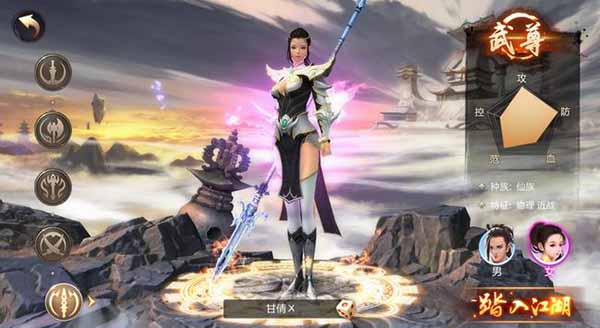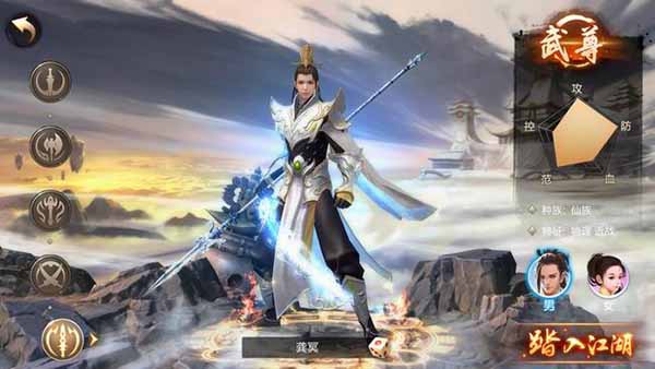 武尊武器为一柄长枪,属于高攻、高防、低血量的职业,以戳、挑、刺、投来攻击,对敌人形成犹如狂风暴雨的打击。技能效果非常炫酷,释放必杀时,还会有数条金龙游走于身旁,加上武尊银枪白甲的拉风造型,简直是新一代男神的代表!