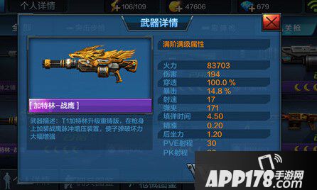 AA-12的最大优势是续航,加特林同样续航持久,这对组合打小怪效果不如前者,不过打BOSS的伤害绝对高,一把满弹夹300+的战鹰只要有输出环境十万以上伤害是妥妥的,小怪近身AA-12清理清理就好了。