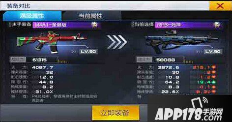 M4A1-圣诞版的穿透加成特性在PK对战中十分的实用,RFB-死神的精准性也是很重要的,但是相比属性,M4A1-圣诞版胜。